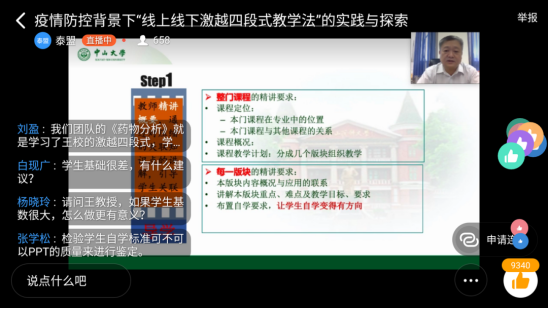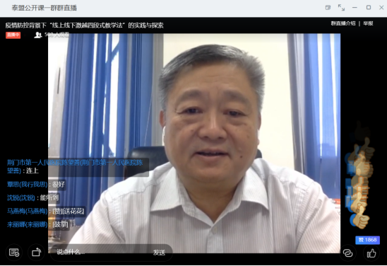 王庭槐教授在课程直播中提到:开展线上教学,不仅是完成教学任务,更应该成为推动教师教学理念,教学方式转变的一次机遇。疫情防控期间应该掌握好通过互动、互爱、分享、激发、超越的方式提高学生的自主学习能力、批判性思维、团队协作能力。