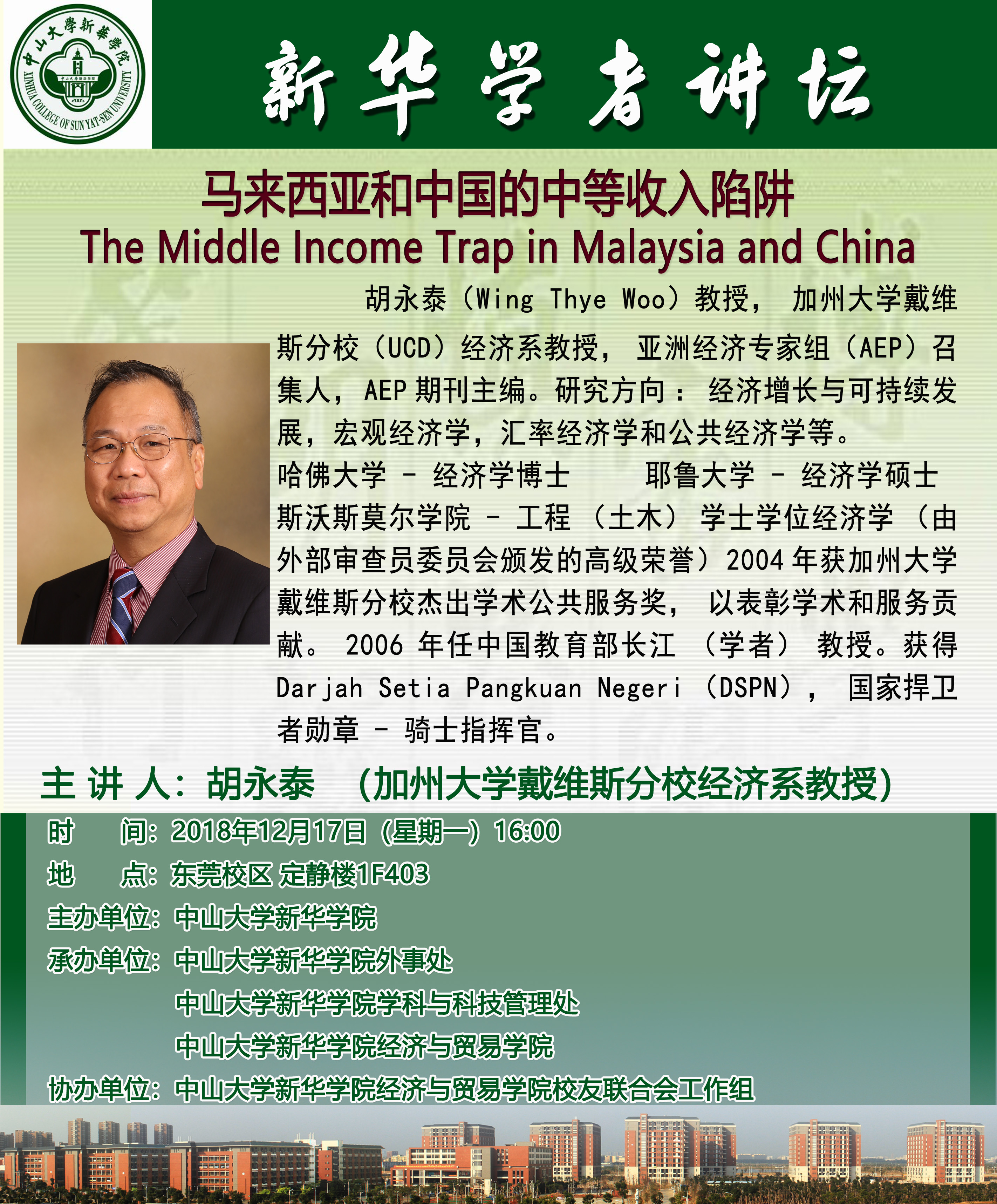讲座主题:The Middle Income Trap in Malaysia and China马来西亚和中国的中等收入陷阱
