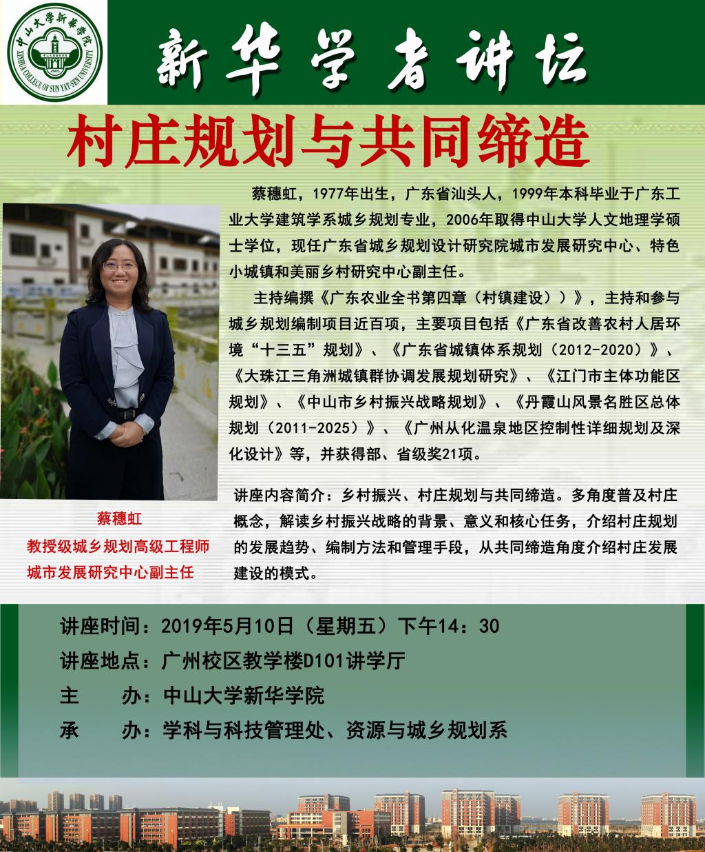 蔡穗虹, 1977年出生,广东省汕头人,1999年本科毕业于广东工业大学建筑学系城乡规划专业,2006年取得中山大学人文地理学硕士学位,现任广东省城乡规划设计研究院城市发展研究中心、特色小城镇和美丽乡村研究中心副主任。