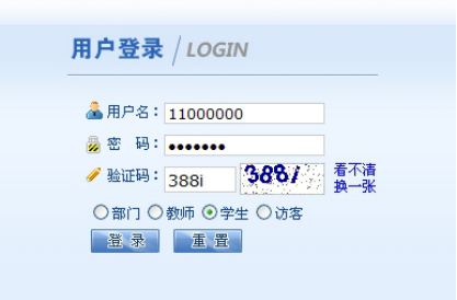 第一步:打开IE浏览器,输入网址jw.zdxh.cn(外网)或192.168.255.71(内网),进入用户登录界面。输入学号及密码,选择“学生”角色,按“登录”,界面如下: