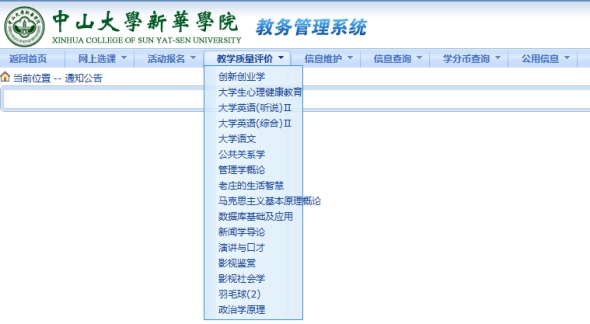 (二)所有学生都必须在规定时间内完成网上评教,否则将不能在教务管理系统中进行选课、查询期末考试安排和考试成绩。