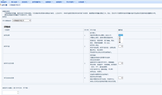 第二步:登陆系统后,点击[教学质量评价],界面如下: