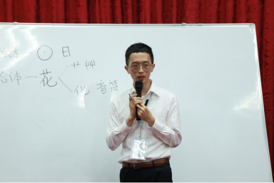 来自中文系的曾富城老师参赛讲授的知识点是《古代汉语(一)》课程中的表意字概说。曾富城老师从什么是象形字、指事字等对表意字进行例证讲解,从什么是会意字来对表意字进行侧面区分,通过练习加深学生对表意字的理解。