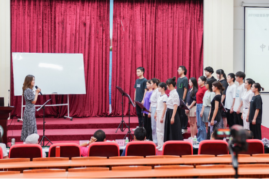 来自音乐系的童秀萍老师在现场讲授的是《中国经典合唱作品与指挥》课程中作品《黄水谣》。童秀萍老师的课堂气氛愉快,在与学生们的现场互动中讲述了作品的历史背景,对专业的知识进行了生动的比喻,指导学生们现场进行合唱练习,加深学生们对合唱艺术和指挥技术的理解和运用。