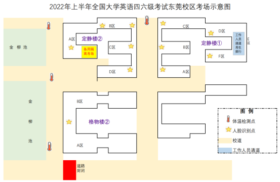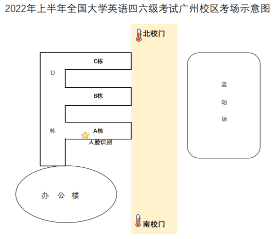 根据CET考试相关规定,考试开考后(上午9:00、下午15:00)禁止考生进入考试教室。因我校四六级考试考生较多,进行体温测量及人脸识别时可能会因人流量大而出现拥堵现象,请各位考生合理安排时间,提早入场。