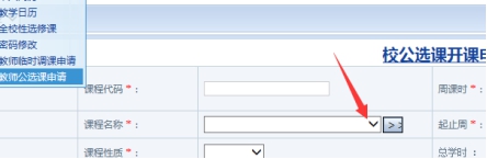 3.在弹出的新界面中选择“课程名称”栏中的下拉框