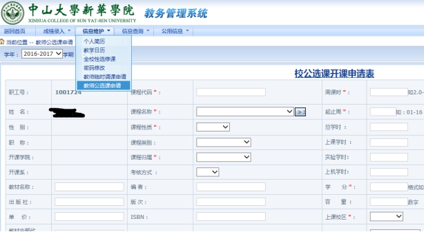 2.选择“信息维护”――“教师公选课申请”。