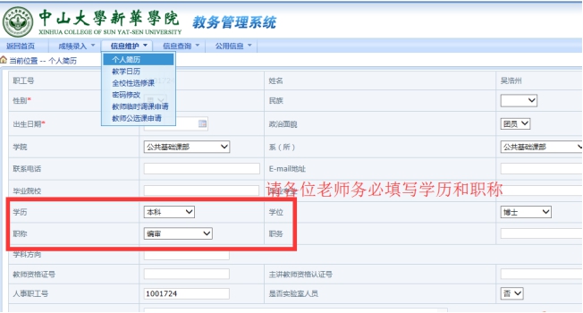 1.登陆教务系统,选择“信息维护”――“个人简历”。