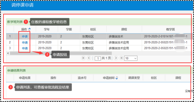 功能描述:调停课申请模块用于任课教师申请调课、停补课、换教室、换教师。