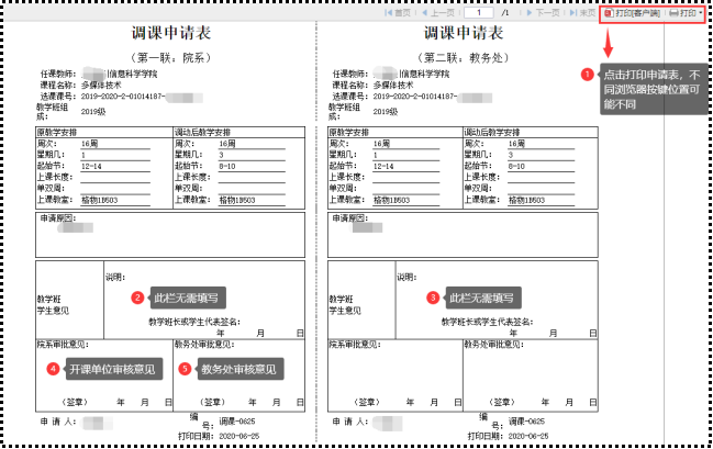 3.开课单位将经单位负责人审批通过的调课申请单交至教务处审核。