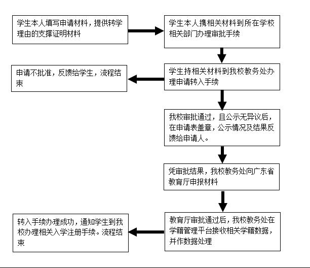 4.经学校审批同意,并挂网公示无异议后,教务处汇总转学材料上报广东省教育厅。