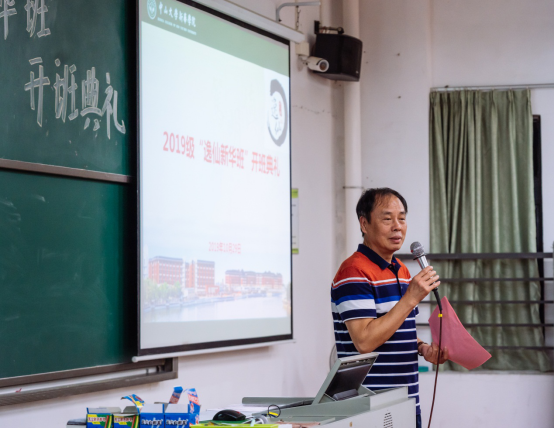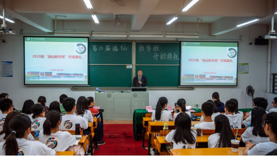 王庭槐校长为开班典礼致辞。王庭槐校长简要总结了历时五年逸仙新华班教育教学模式所取得的显著成效,对2019级逸仙新华班学子提出了殷切的希望:一是要更好践行“三早”教育。早规划人生,制定清晰的目标和计划,要有周计划、月计划、年计划,将人生目标细化到每月每周每日的学习实践中去。二是早理论联系实际,在完成常规学习任务的基础上,充分利用M00Cs、SPOC、数字图书馆、图书馆等线上线下教学资料开展研究性学习;三是早接触社会实践,通过开展各种专业实验和实践,多接触社会实际、解决现实问题,在社会实践中运用和检验课本所学知识。二是要有“我来,我来”的担当和气魄。从递交逸仙新华班报名表那一刻起已初露“我来”的气魄,但要在以后的学习中持续发扬。最后王庭槐校长鼓舞2019级逸仙新华班学子:“路漫漫其修远兮,吾将上下而求索”,在这样一个追逐梦想的时代,在逸仙新华班这个成就梦想的舞台上,胸怀梦想,脚踏实地,不忘今天的“初心”,牢记人生的“使命”,给自己、给家长、给老师、给学校交上一份满意的答卷。