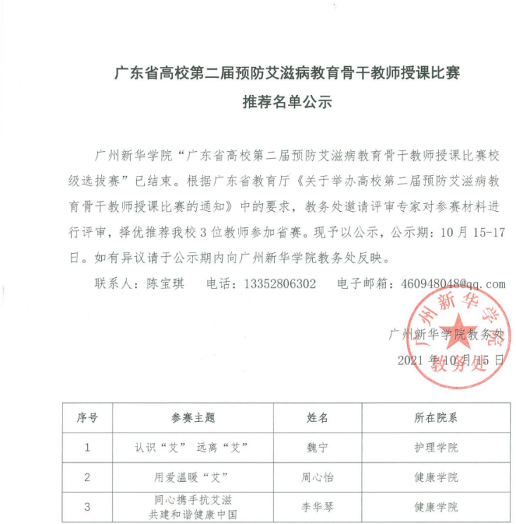广东省高校第二届预防艾滋病教育骨干教师授课比赛