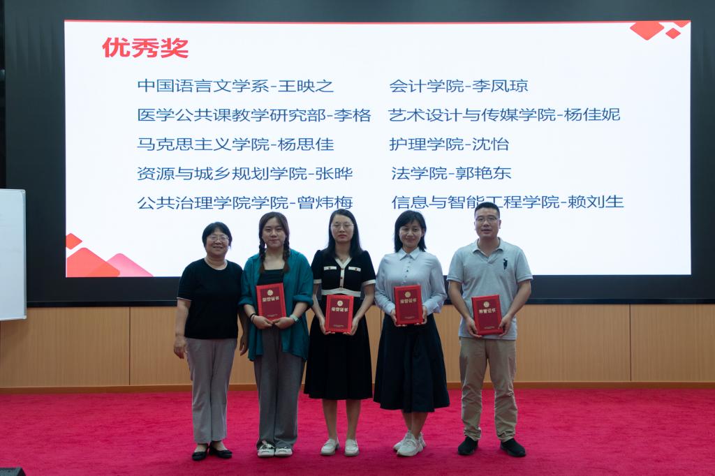宋粉云教授(左一)为优秀奖获奖教师颁发荣誉证书