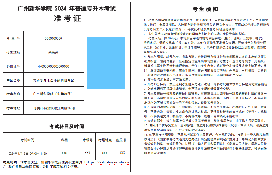 注意:准考证上不得有其他字迹。如有字迹一律事先报告,否则开考后发现按作弊处理。