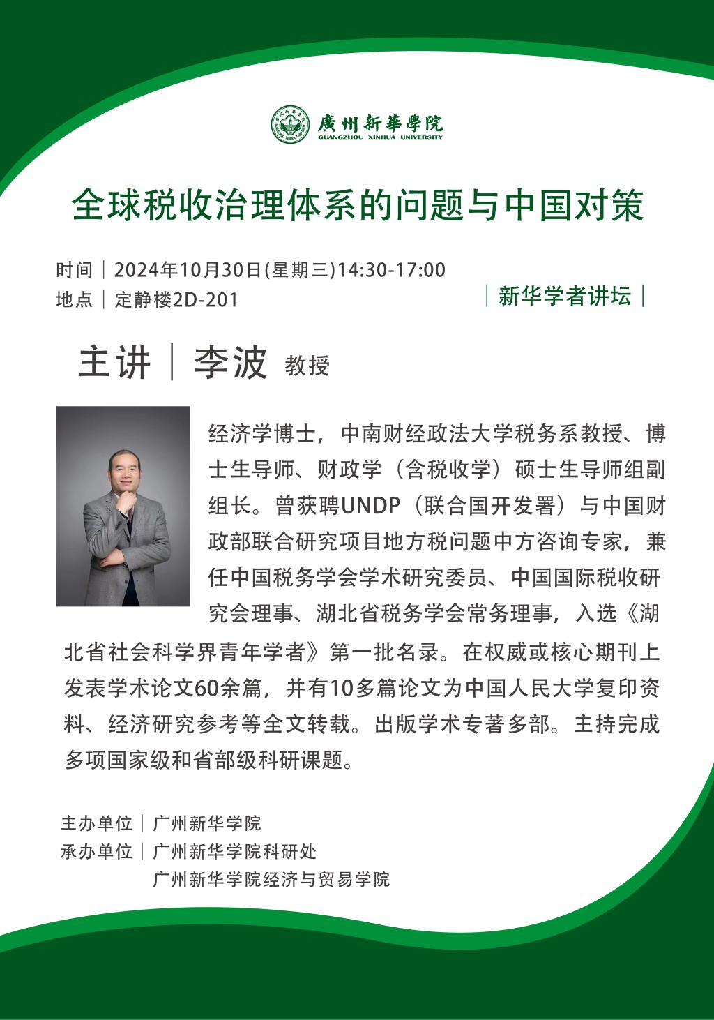 讲座时间:2024年10月30日星期三下午14:30~17:00