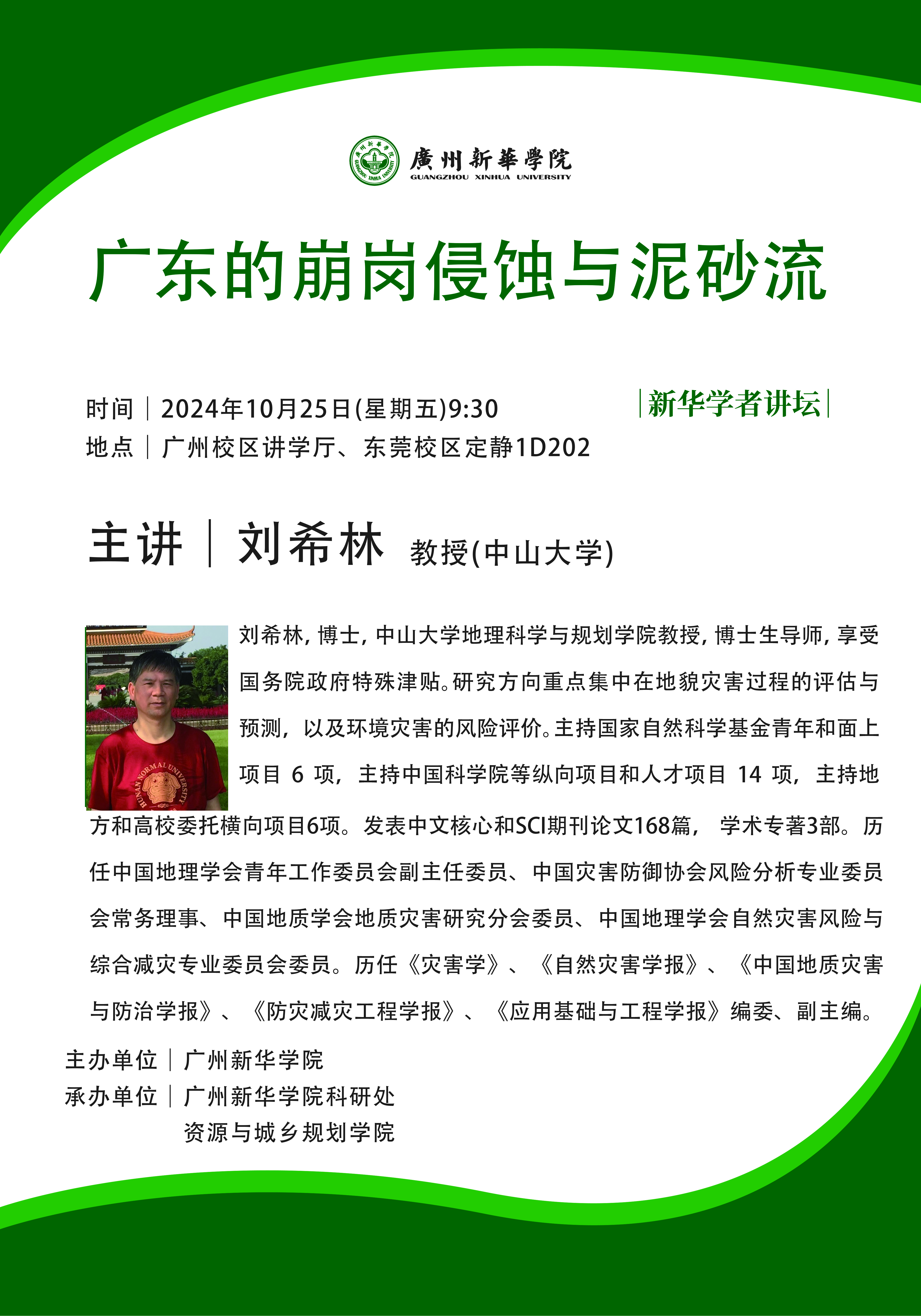 讲座题目:广东的崩岗侵蚀与泥砂流