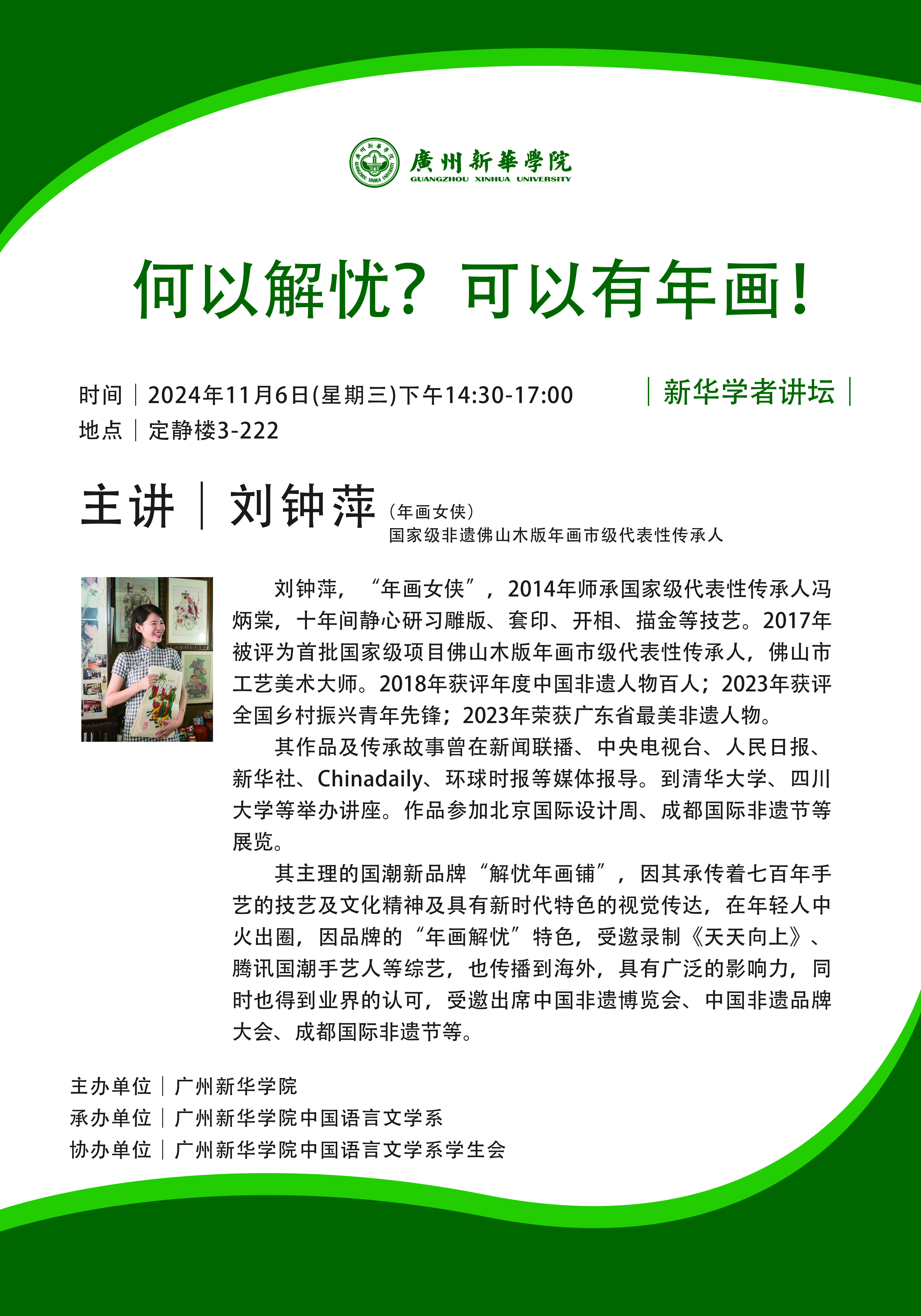 主 讲:刘钟萍(国家级非遗佛山木版年画市级代表性传承人)