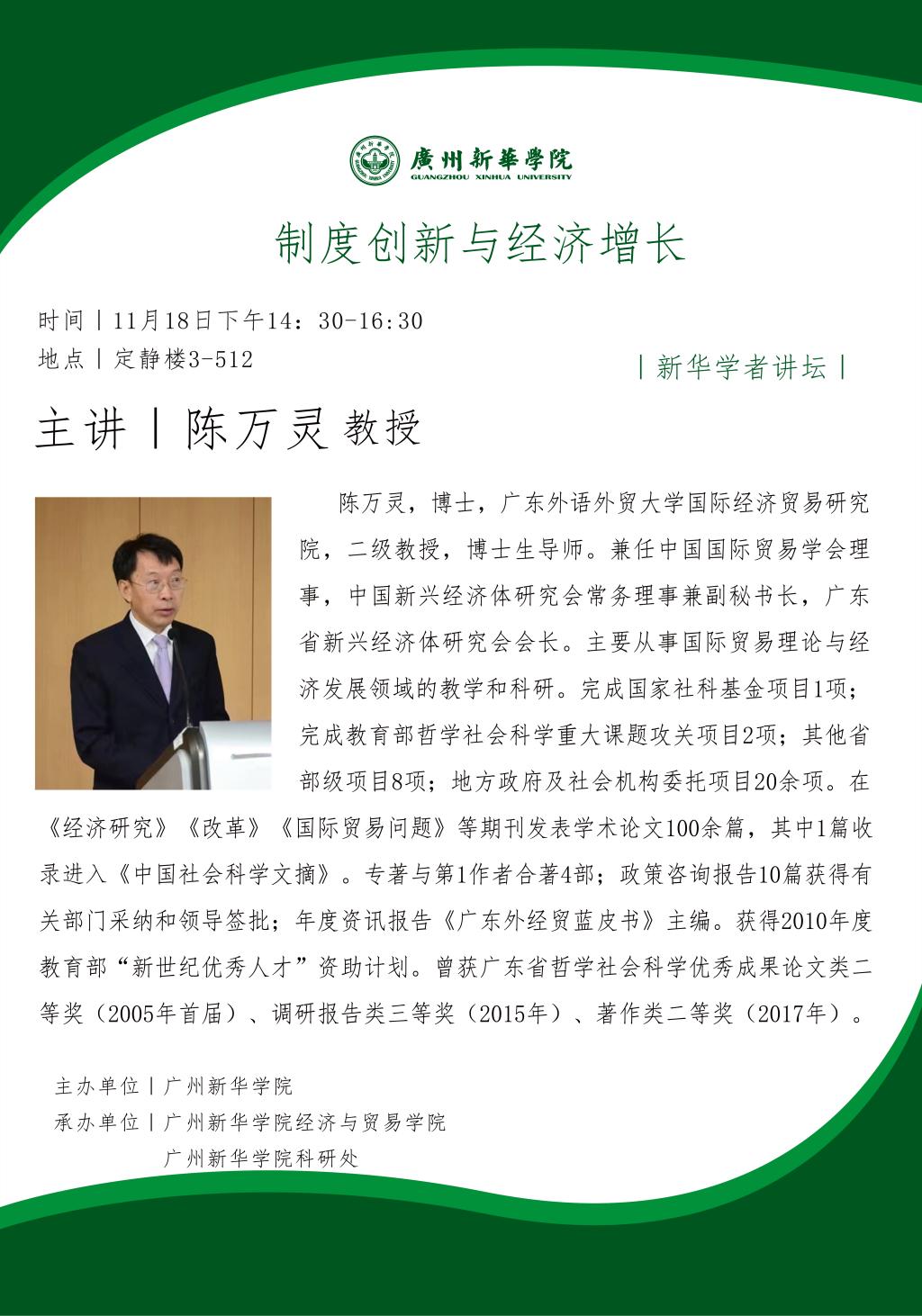 陈万灵,博士,广东外语外贸大学国际经济贸易研究院,二级教授,博士生导师。兼任中国国际贸易学会理事,中国新兴经济体研究会常务理事兼副秘书长,广东省新兴经济体研究会会长。主要从事国际贸易理论与经济发展领域的教学和科研。完成国家社科基金项目1项;完成教育部哲学社会科学重大课题攻关项目2项;其他省部级项目8项;地方政府及社会机构委托项目20余项。在《经济研究》《改革》《国际贸易问题》等期刊发表学术论文100余篇,其中1篇收录进入《中国社会科学文摘》。专著与第1作者合著4部;政策咨询报告10篇获得有关部门采纳和领导签批;年度资讯报告《广东外经贸蓝皮书》主编。获得2010年度教育部“新世纪优秀人才”资助计划。曾获广东省哲学社会科学优秀成果论文类二等奖(2005年首届)、调研报告类三等奖(2015年)、著作类二等奖(2017年)。