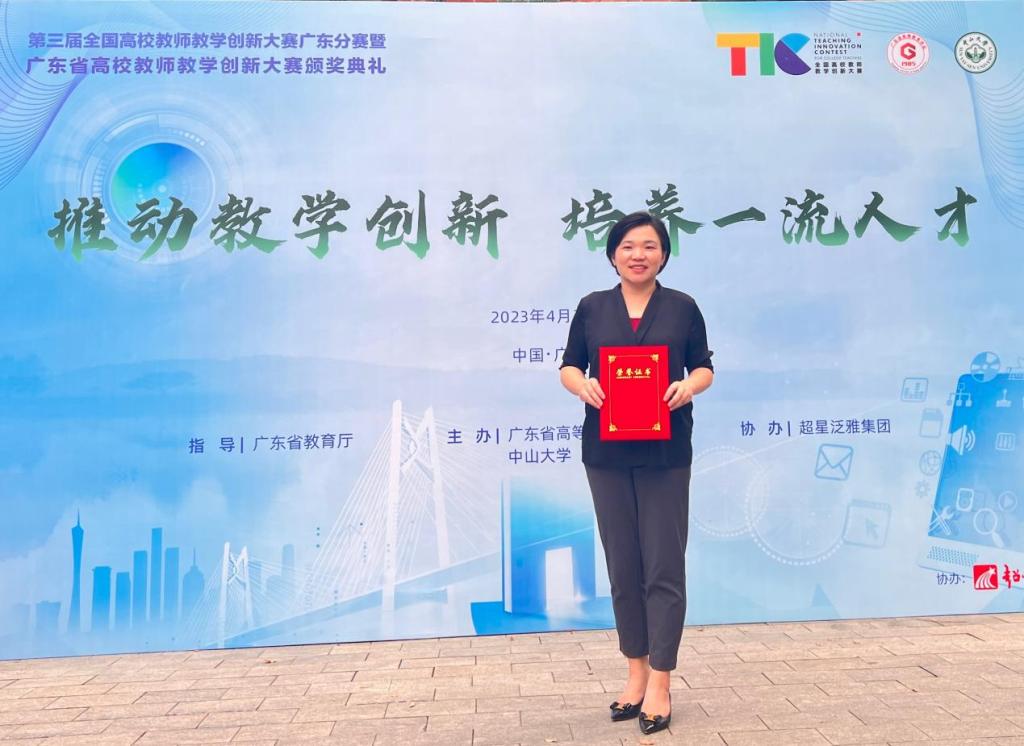 2023年4月8日至4月9日,第三届全国高校教师教学创新大赛广东分赛暨广东省高校教师教学创新大赛落下帷幕,我校药学院徐娟娟教学团队(徐娟娟、成燕琴、王有娣、黎卓熹)荣获新医科赛道(副高组)三等奖;会计学院陈世忠教学团队(陈世忠、幸倞、丁佳佳、郭瑞营)荣获课程思政赛道(中级及以下组)优秀奖。
