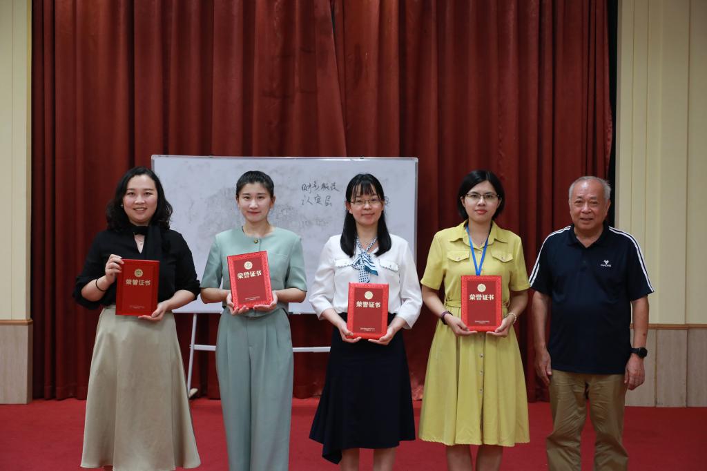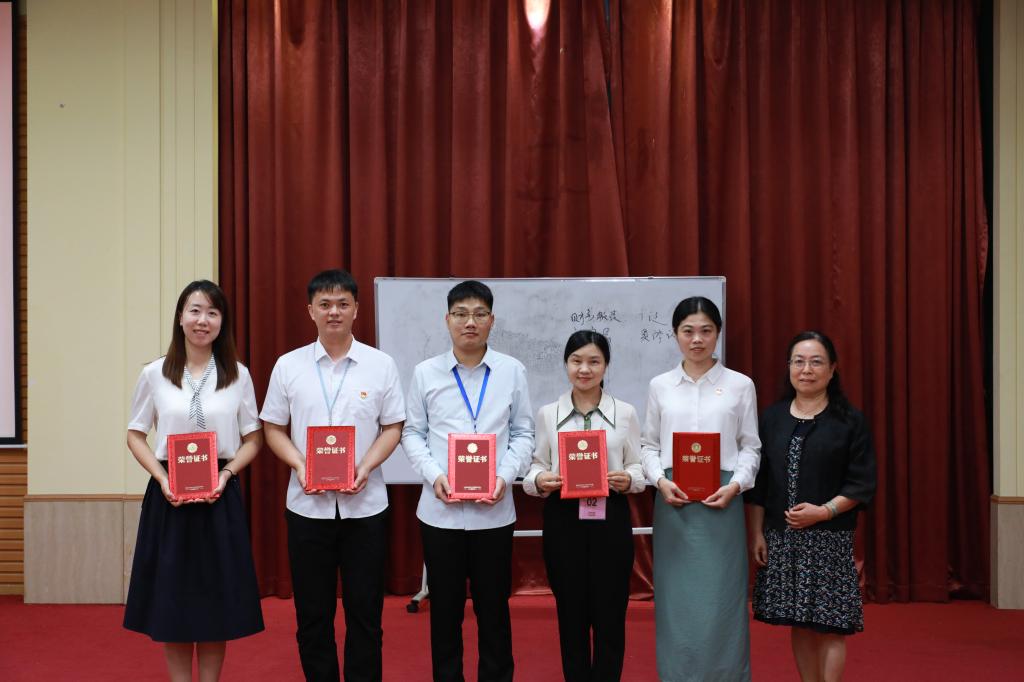 郑穗芬校长助理(右一)为三等奖获奖教师颁发荣誉证书