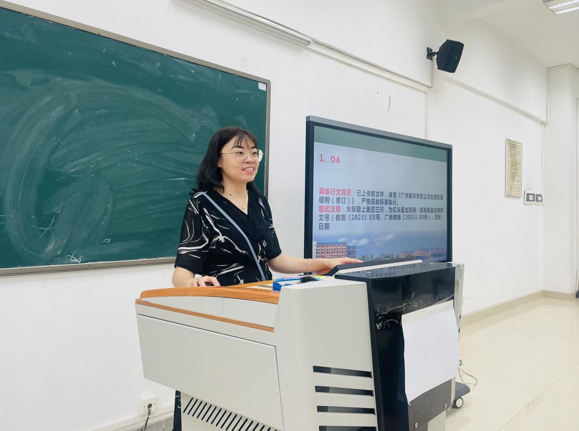接着综合科于馨淼老师就部门管理相关工作制度及流程进行了细致的讲解。内容包括:公文写作标准及行文规范;宣传发布流程;上校长办公会流程;用印流程;离职审批流程;考勤、加班、调休、请假流程、值班管理规范以及经费报销规范等。本次讲解通过结合精彩的答题活动,使大家收获满满。