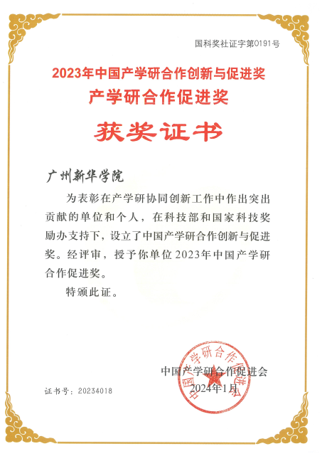 我校喜获“2023年中国产学研合作促进单位”荣誉称号