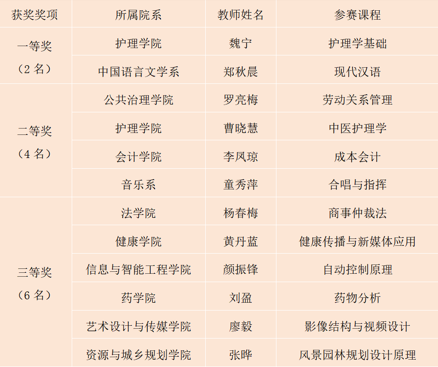 本次竞赛自2024年9月启动,经过院系初赛、校赛网络评审后,最终选拔出13位教师进入校级现场决赛。经过激烈角逐,现场决赛最终评选出一等奖2名、二等奖4名、三等奖6名。护理学院获优秀组织奖。