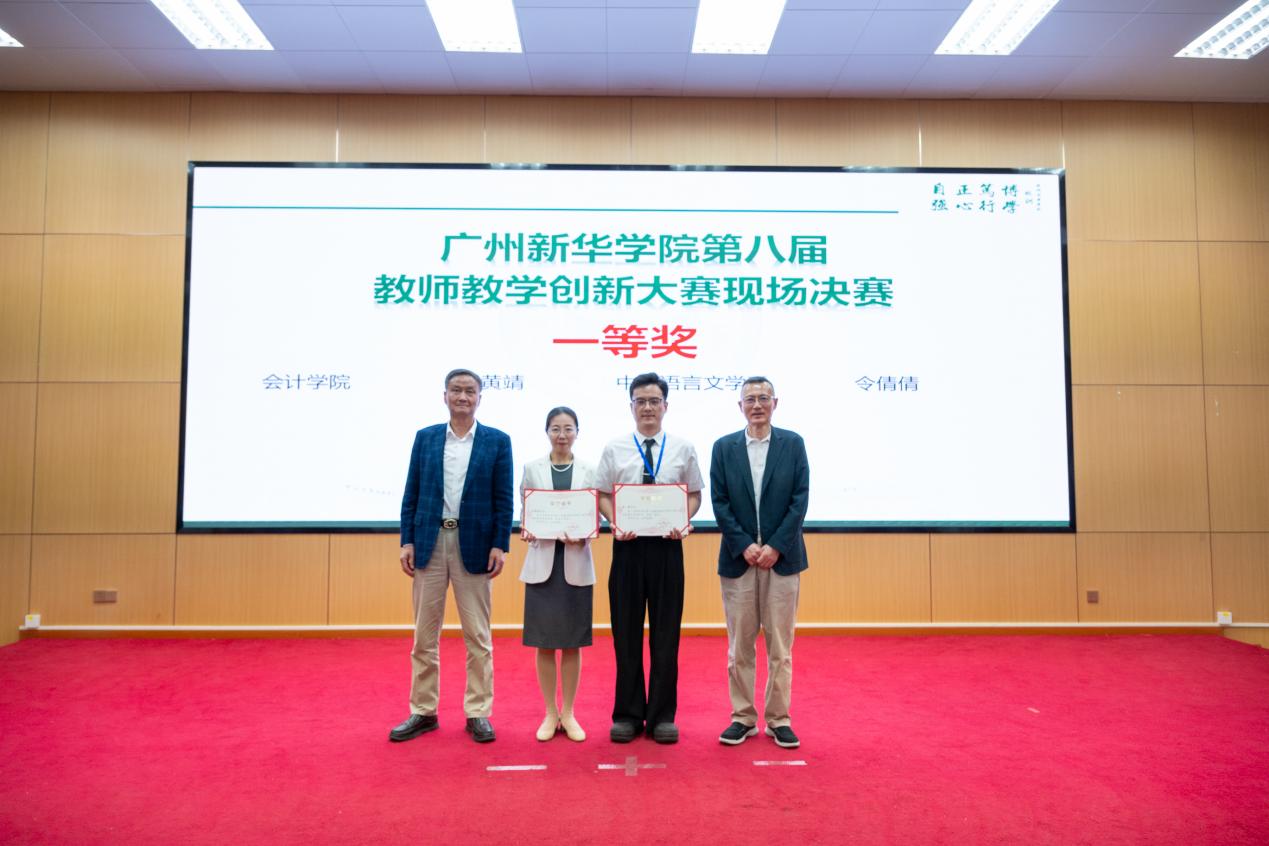 王坤教授(左一)、肖化常务副校长(右一)为一等奖获奖教师颁发荣誉证书
